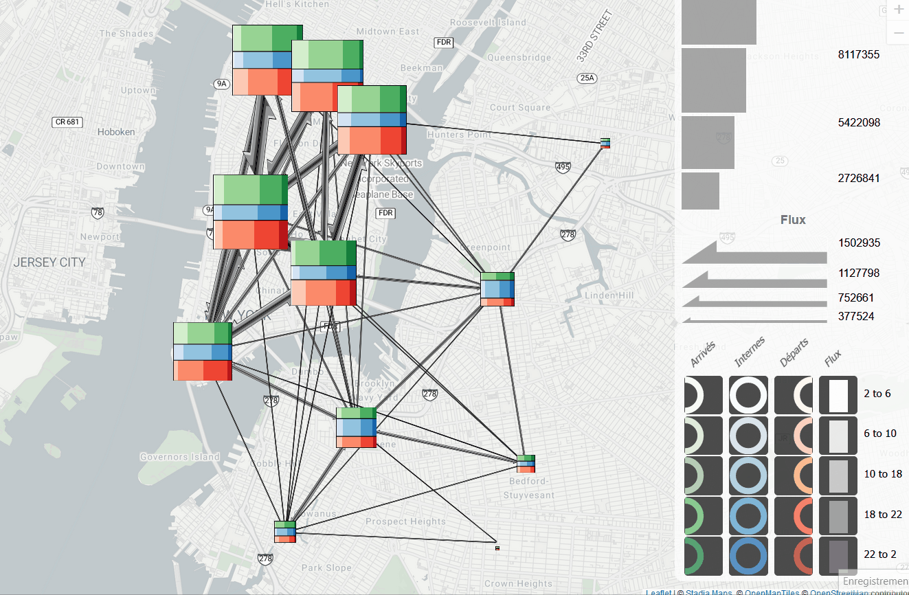 Gautier J., Heau V., Besnier J.-B., Peutin C., Lopez Uros L. Designs for the visual analysis of spatio-temporal origin-destination flow data .
